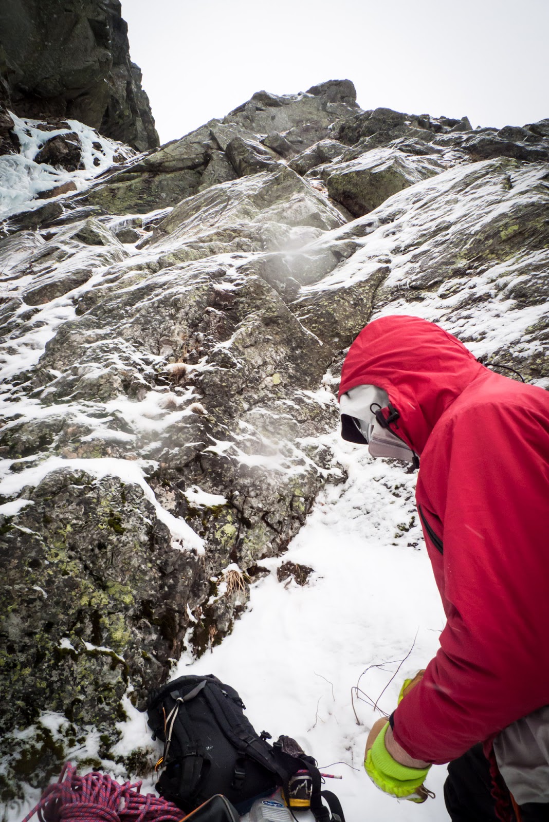 Yesterday, a month and two days after I got out for my first day of ice climbing this season, I went out for a second day. This time instead of heading over to Cannon for my yearly stab at getting the first seasonal ascent of the Black Dike, I was after an actual first ascent.
