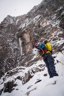 “HOLY SHIT,” I yelled, my feet scraping against the rock, “THAT WAS INSANE!” Both my tools were still in my hands, and despite grazing the cliff as I fell nothing seemed hurt. “I guess I’m going back up,” I said, leaning into the corner. I sunk my picks back into turf I’d led minutes before, this time toproping off a number 4 HB offset. When I reached the nut I stood and stared at it. It was well-placed, but testing it with a fall seemed crazy. How had it held? I looked at the loose flakes above me, my trust wavering. I don’t want to risk that fall again, I thought, but I knew if I didn’t my trust and faith would evaporate. Falling isn’t the same as failure, but not getting back on would be.
