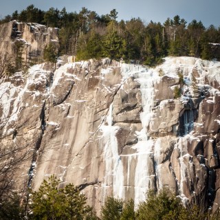 I have not been on much ice thus far this season, particularly vertical ice, so it took a bit to center myself once I sunk my picks. The ice, however, was just as I suspected — forgiving. I moved upwards a swing at a time, placing more screws than necessary but enough to stay comfortable. At the break I grabbed a no-hands rest, sunk another screw or two and launched for the apex. Every swing sunk with minimal effort, and I couldn’t keep the smile off my face. This too was what I was here for.
