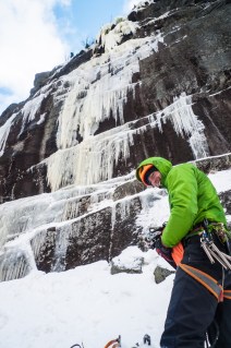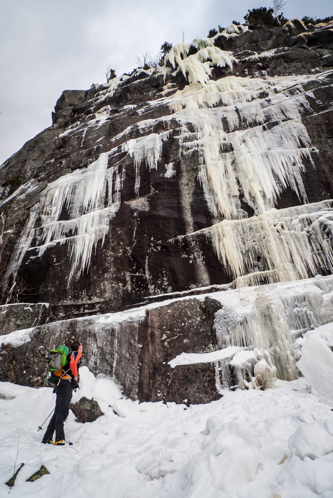 Peter and I met at 8 a.m. this morning in a grocery store parking lot. He tossed his pack in my car, and we started the hour and a half drive from Glen to Grafton Notch. A friend had let it slip that Hackett-Tremblay, a classic grade 5 that makes rare appearances, was in. The ice in the Mount Washington Valley was looking haggard so we were skeptical, but we figured it was worth a shot. 60 miles later we saw it: a dribble of yellow ice spilling down 200 feet of rock. Perfect. Time to go ice climbing.